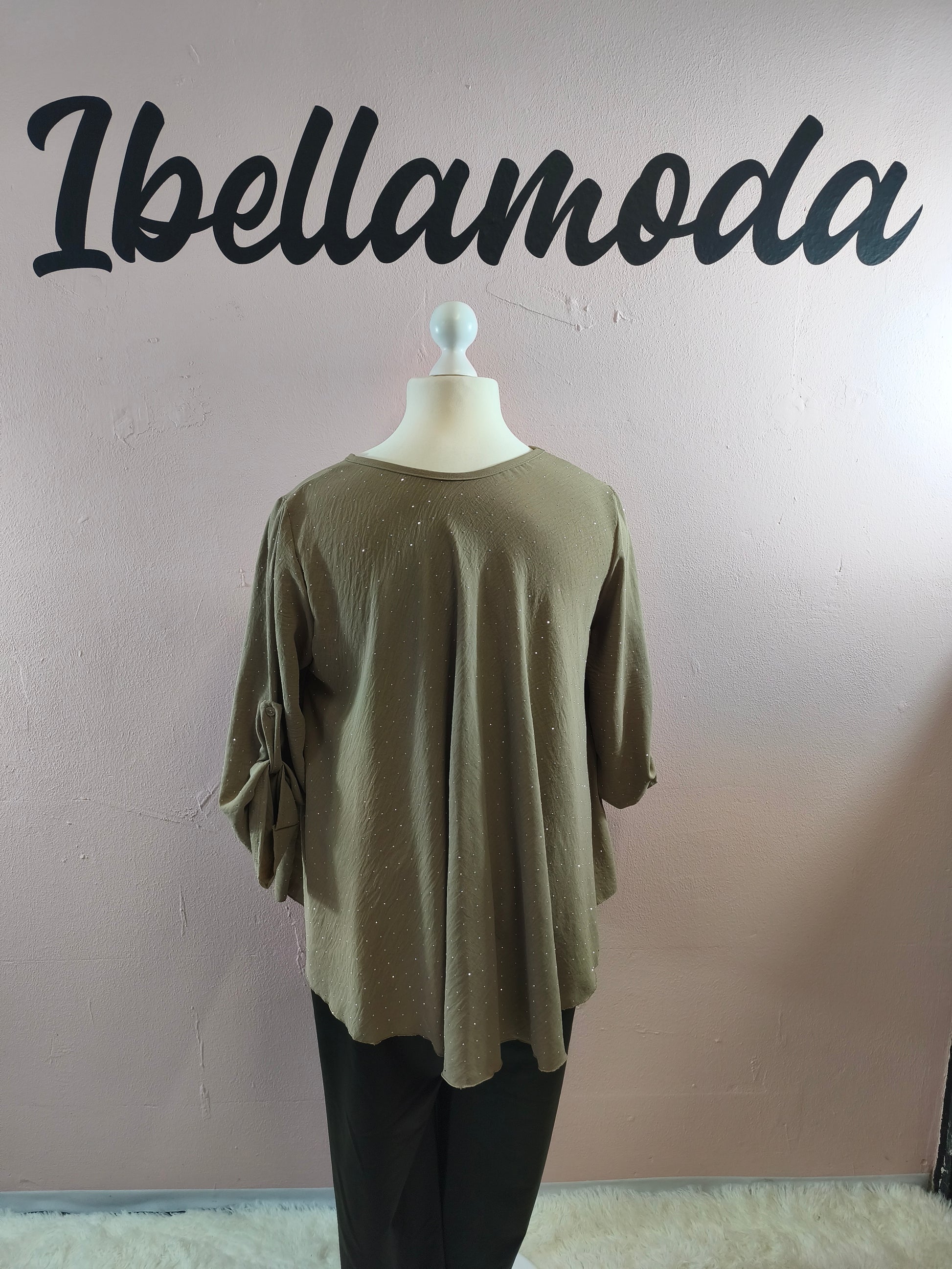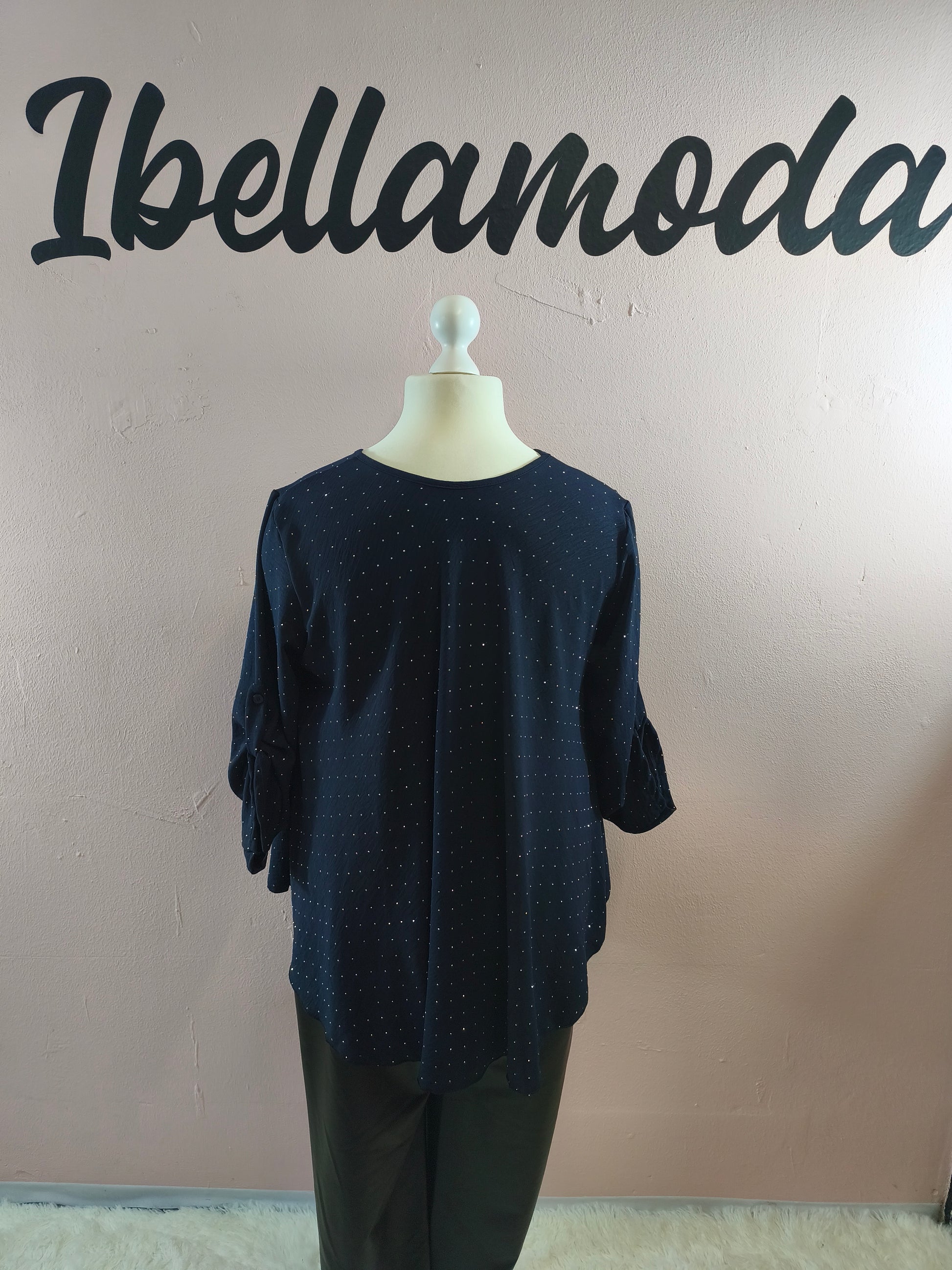 Glitzerapplikationen auf der gesamten Bluse für funkelnde Effekte bei jedem Licht.